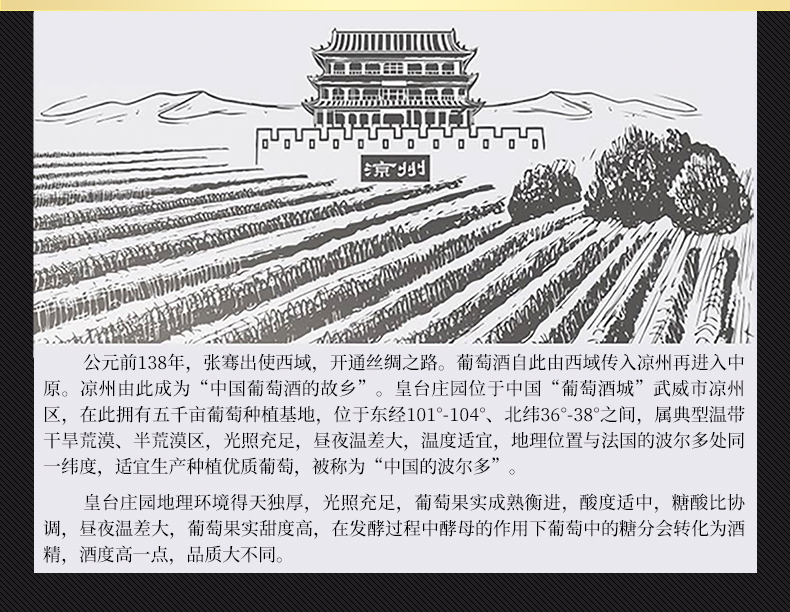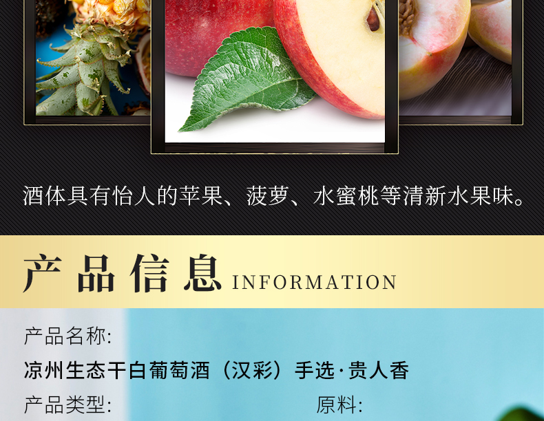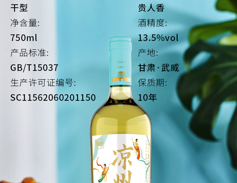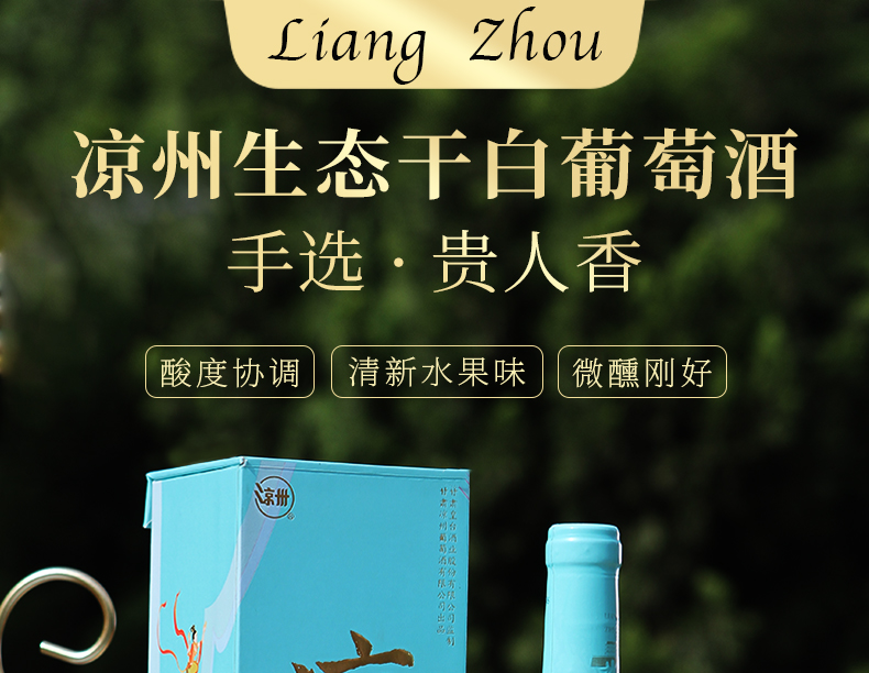 產(chǎn)品名稱:涼州生態(tài)干白葡萄酒(漢彩)手選·貴人香