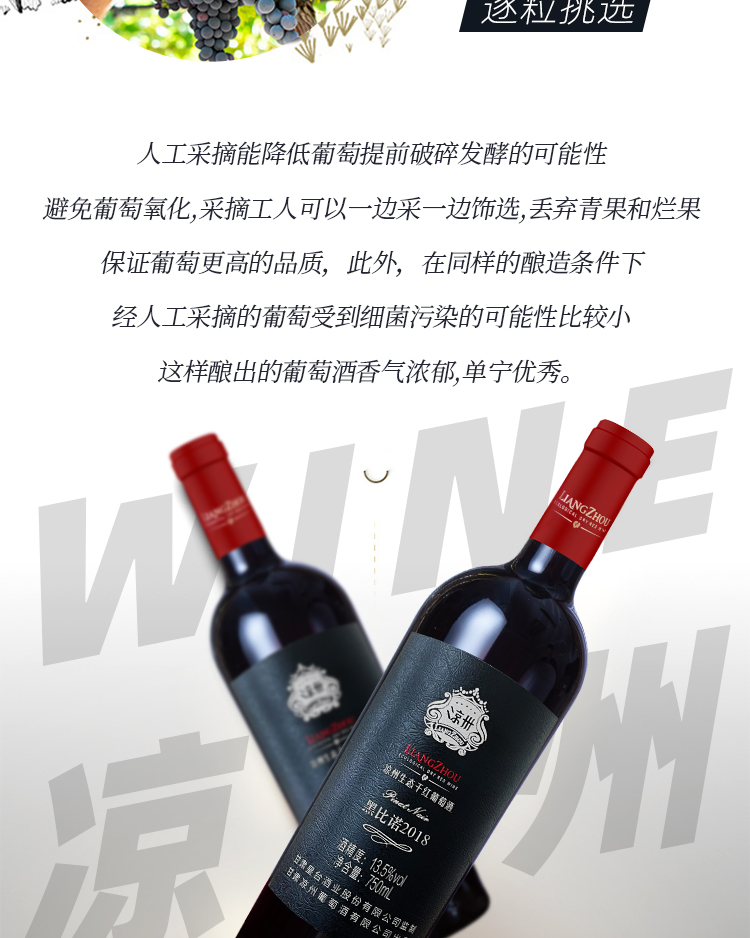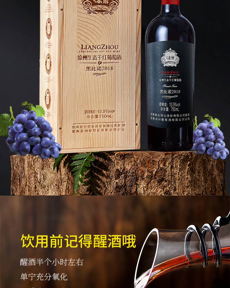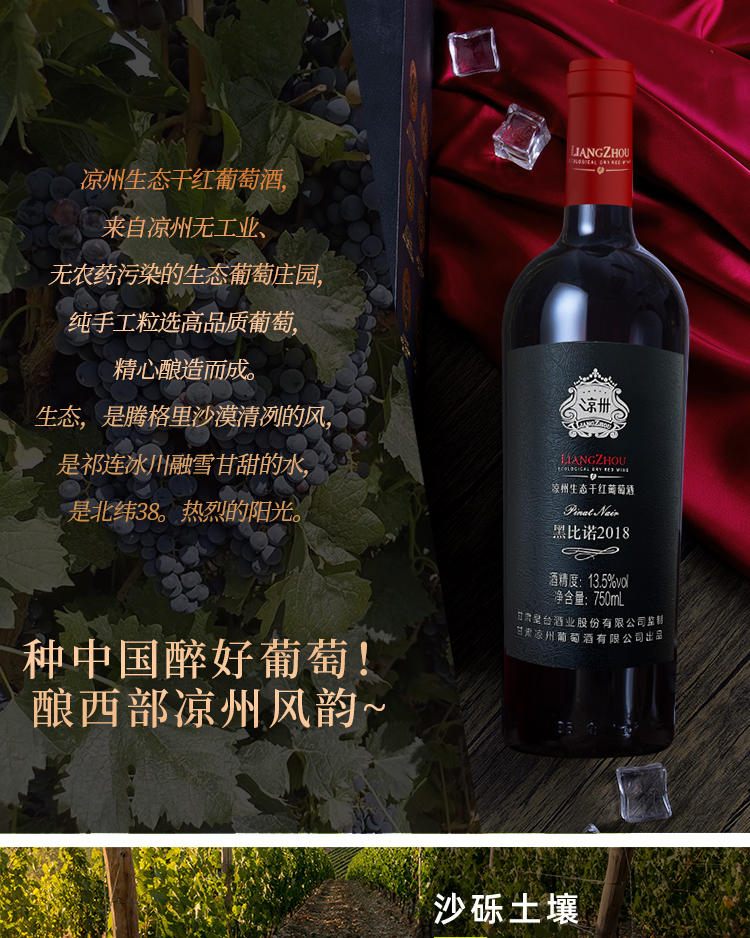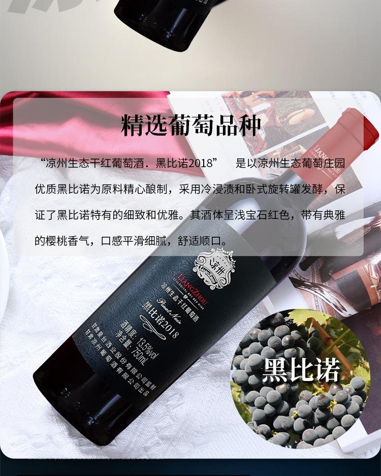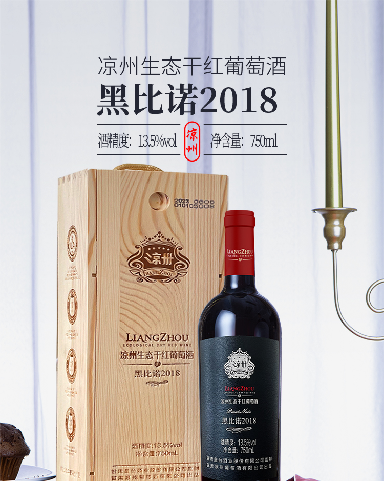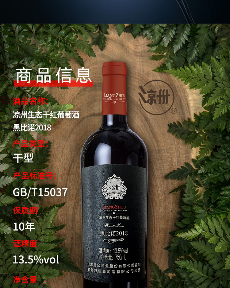 酒品名稱:涼州生態(tài)干紅葡萄酒黑比諾2018