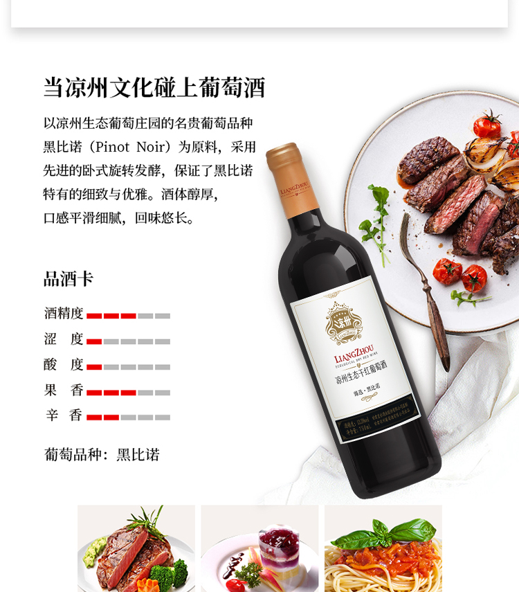 酒品名稱:涼州生態(tài)臻選·黑比諾干紅葡萄酒