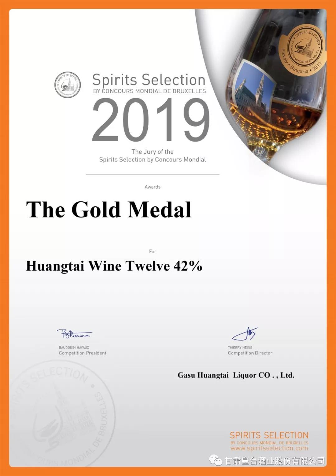 2019年9月19日,第20屆比利時布魯塞爾國際烈性酒大獎賽(以下簡稱“CMB烈酒賽”)中國獲獎酒頒獎典禮在山西汾陽舉行。皇臺酒業(yè)受邀參加了頒獎典禮,CMB烈酒賽總經(jīng)理提艾利·漢斯、北京國際酒類交易所總經(jīng)理朱力親自為獲獎品牌頒獎,表彰了中國白酒在這項(xiàng)賽事上再次取得的優(yōu)異成績,皇臺酒業(yè)在此次盛會獲得優(yōu)異成績。