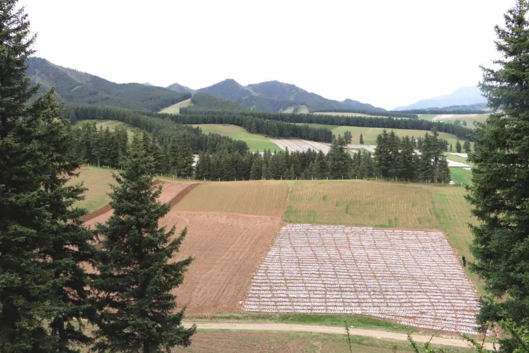 哈溪山腳下,紅綠相映,格外醒目,皇臺(tái)酒,無處不在