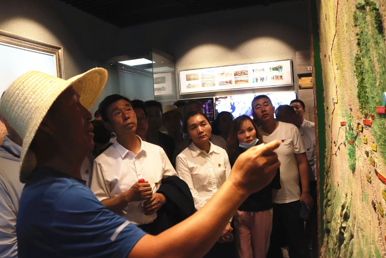 在紀(jì)念館講解員的講解下,大家神情肅穆,認(rèn)真聆聽。一張張圖片,一幅幅生動(dòng)的畫面,向大家形象展示了八步沙六老漢心系沙海、以苦為樂,自強(qiáng)不息、改造河山、戰(zhàn)天斗地的創(chuàng)業(yè)精神,黨員們無不被深深震撼。
