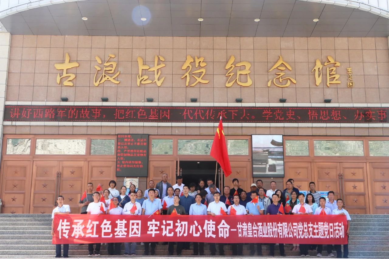 為慶祝中國共產(chǎn)黨成立100周年,回顧黨的光輝歷程,謳歌黨的豐功偉績, 堅定黨員理想信念,緬懷革命先烈,傳承紅色精神,進(jìn)一步激發(fā)黨組織活力, 增強(qiáng)職工凝聚力向心力,6月29日,甘肅皇臺酒業(yè)股份有限公司黨總支組織公司全體黨員前往古浪戰(zhàn)役紀(jì)念館,開展慶祝建黨100周年慶“七一”主題黨日活動。