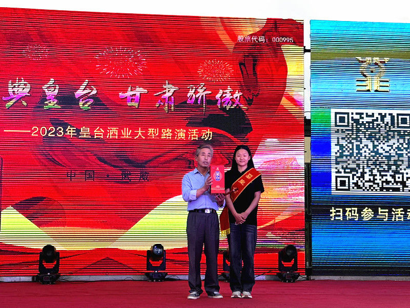 每場路演活動,觀眾只要將活動場景拍照轉(zhuǎn)發(fā)朋友圈積贊,積贊最多者,即可在本場路演活動結(jié)束時,免費獲得由皇臺酒業(yè)頒發(fā)的最佳人氣獎——皇臺國賓酒2盒。