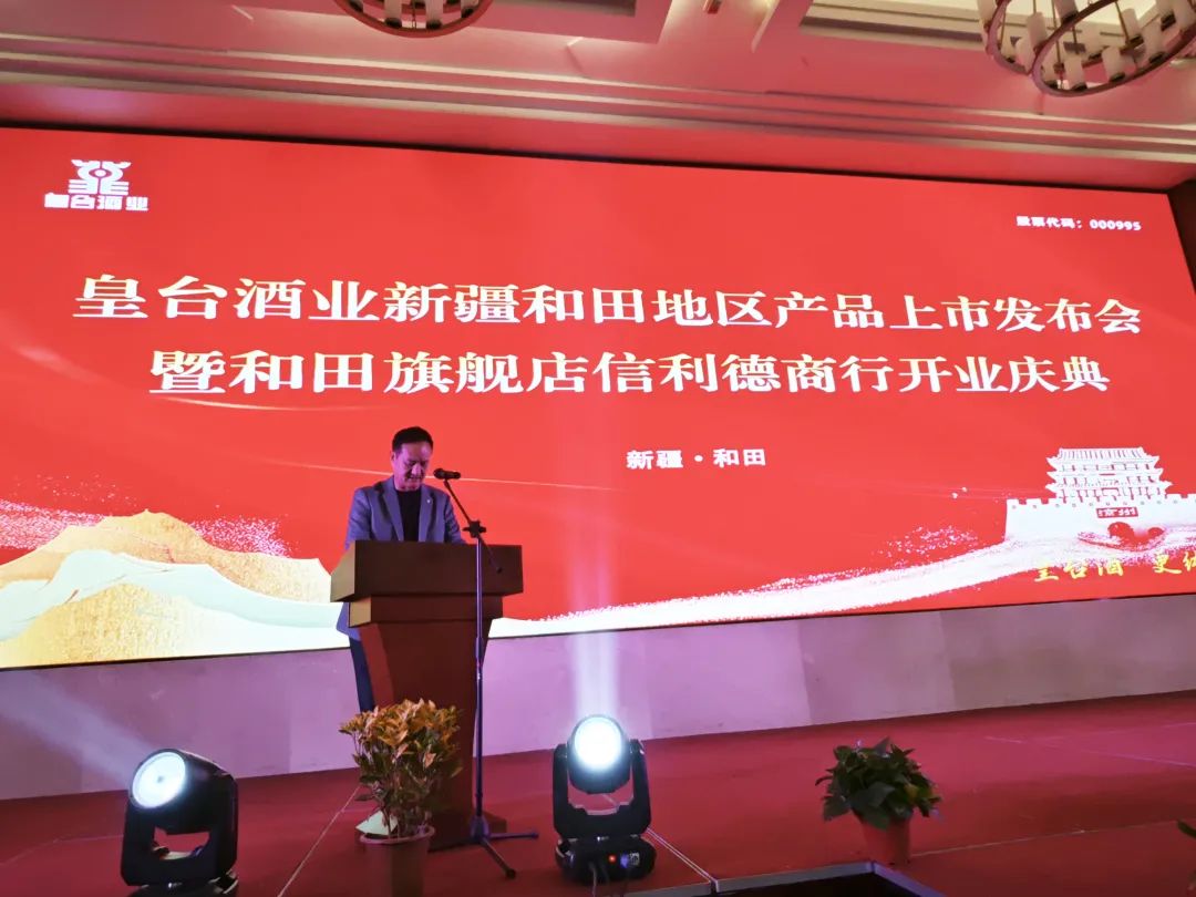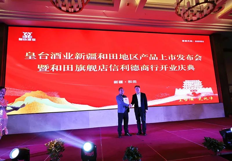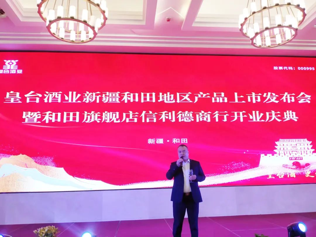 11月11日晚,皇臺(tái)酒業(yè)新疆和田地區(qū)產(chǎn)品上市發(fā)布會(huì)暨和田旗艦店信利德商行開(kāi)業(yè)慶典活動(dòng)在新疆和田迎賓館熱烈進(jìn)行。甘肅日新皇臺(tái)酒銷(xiāo)售有限公司總經(jīng)理辛秀山,副總經(jīng)理王玉強(qiáng),新疆和田地區(qū)皇臺(tái)酒總經(jīng)銷(xiāo)張文以及商界嘉賓近200人共同參與,以酒為媒,共話發(fā)展。