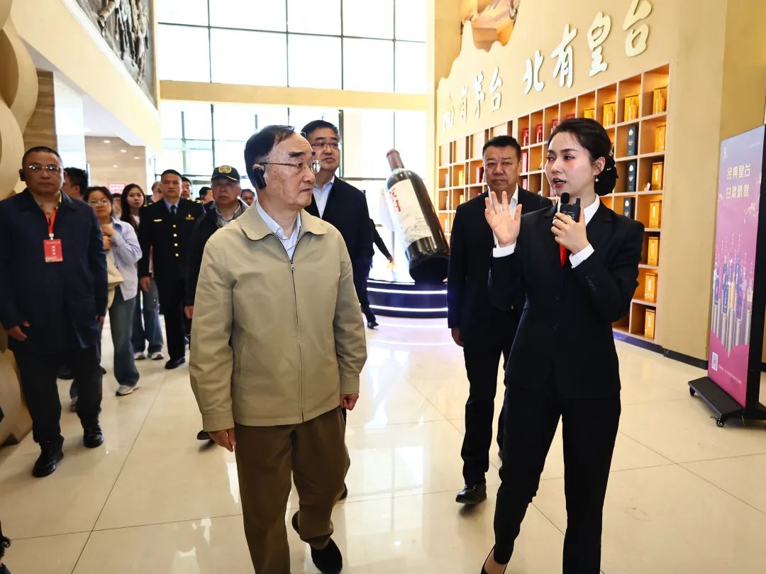 講解員向領導一行講解皇臺酒業(yè)的發(fā)展歷史