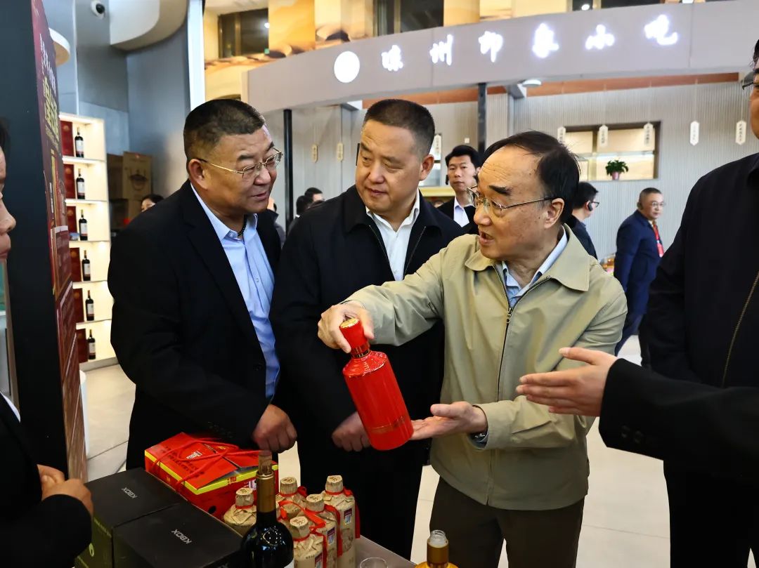 領導一行在皇臺酒業(yè)展臺前了解皇臺酒