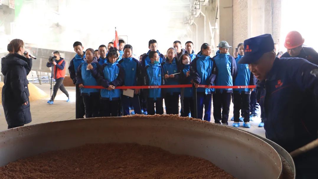 在白酒釀造車(chē)間,師生們近距離地觀(guān)察了從原料篩選、釀造、發(fā)酵到蒸餾的整個(gè)釀酒工藝流程。同學(xué)們聚精會(huì)神地聆聽(tīng),對(duì)白酒蒸餾與發(fā)酵這一概念有了更為直觀(guān)和深刻的理解。