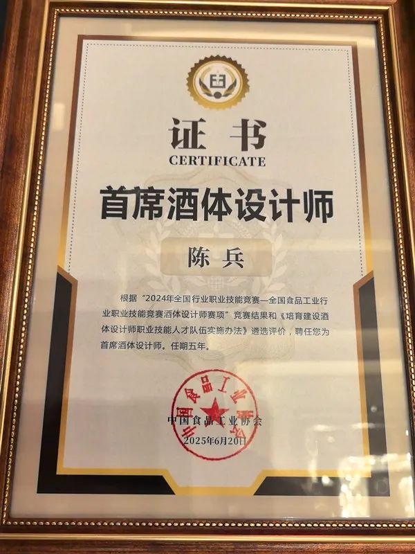 7月2日,在江西南昌舉行的中國(guó)食品工業(yè)協(xié)會(huì)"首席酒體設(shè)計(jì)師頒證大會(huì)暨第十屆白酒評(píng)委第二次年會(huì)"上,皇臺(tái)酒業(yè)副總經(jīng)理兼總工程師、國(guó)家白酒評(píng)委陳兵,憑借數(shù)十年如一的專業(yè)堅(jiān)守與卓越技藝,榮膺"首席酒體設(shè)計(jì)師"稱號(hào)。這項(xiàng)國(guó)家級(jí)榮譽(yù)既是對(duì)陳兵專業(yè)造詣的高度肯定,更是對(duì)皇臺(tái)酒業(yè)科研實(shí)力、品質(zhì)管控及人才培養(yǎng)體系的有力印證。
