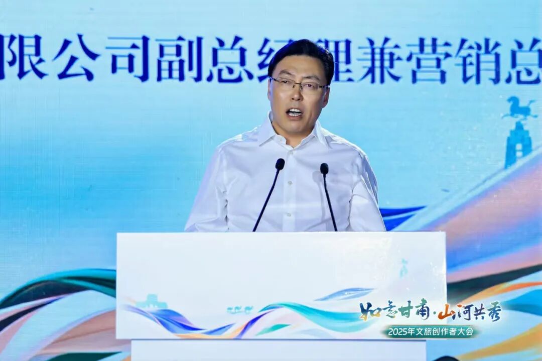 皇臺酒業(yè)副總經(jīng)理、營銷總監(jiān)修衛(wèi)華在文旅創(chuàng)作者大會上講話