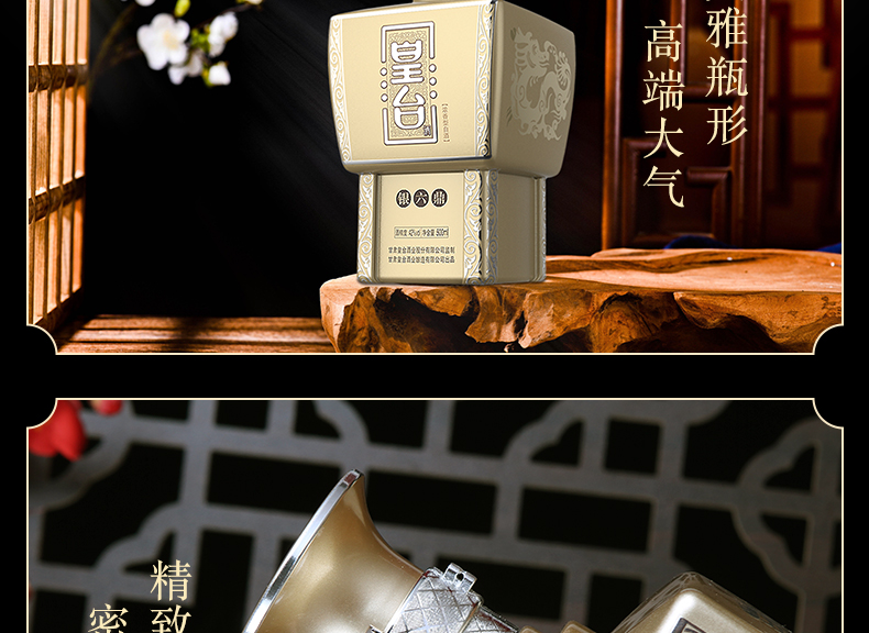 品名:皇臺(tái)酒42度銀六鼎濃香型純糧食高度白酒送禮自飲婚慶禮盒裝