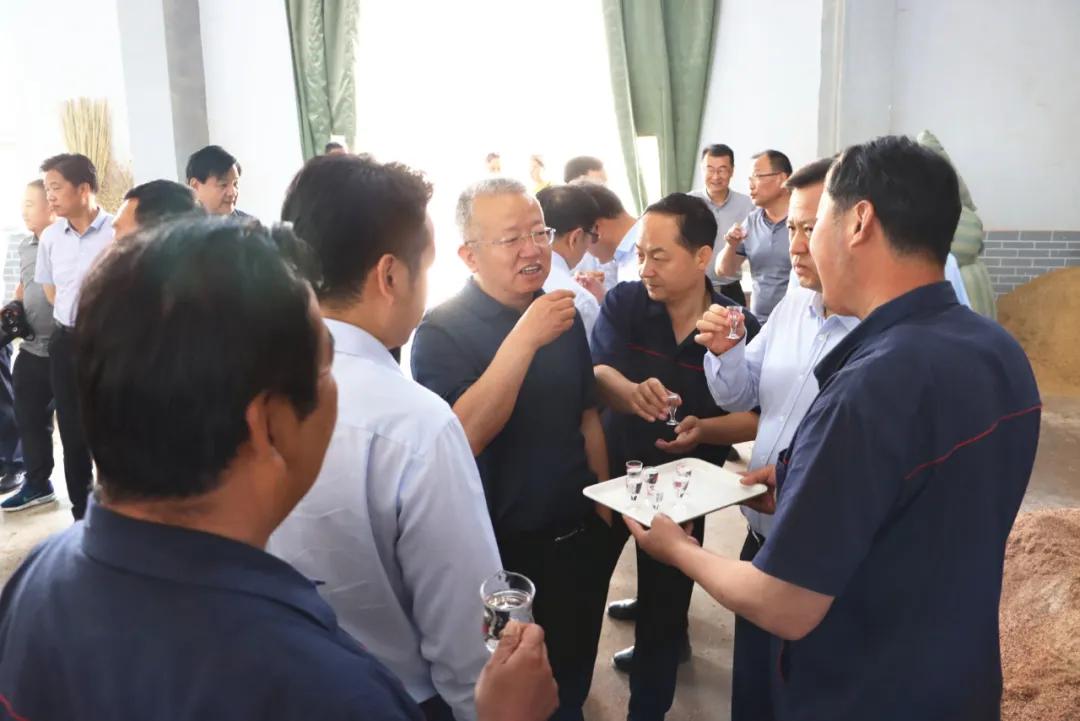 調(diào)研組一行在釀造車(chē)間品嘗原度酒
