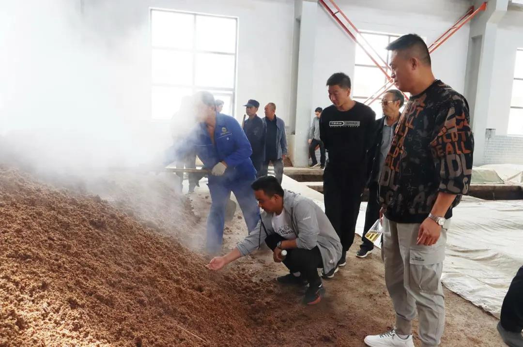 走到酒廠門口,一股酒香便撲鼻而來,興高采烈的客戶們在講解員的引領(lǐng)下,先后參觀了皇臺酒業(yè)的釀造生產(chǎn)車間、半成品酒庫等??蛻敉ㄟ^視覺、嗅覺、味覺360度沉浸式體驗皇臺酒“雙輪底發(fā)酵、單窖循環(huán)法”釀酒工藝和純釀、古法釀造過程,充分感受底蘊深厚的皇臺酒釀造歷史。
