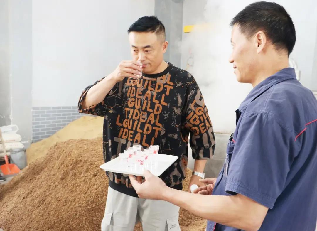 在釀酒車間,金昌客戶們品嘗了剛剛釀好的原漿酒:“哇!真香呀”。