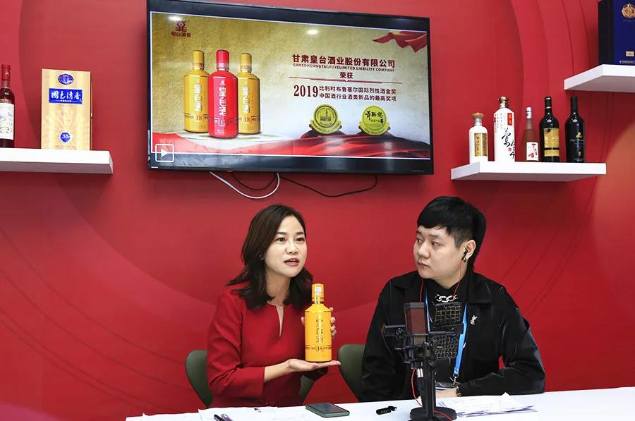 皇臺酒業(yè)代表趙敏在酒博會直播間為線上觀眾介紹皇臺酒