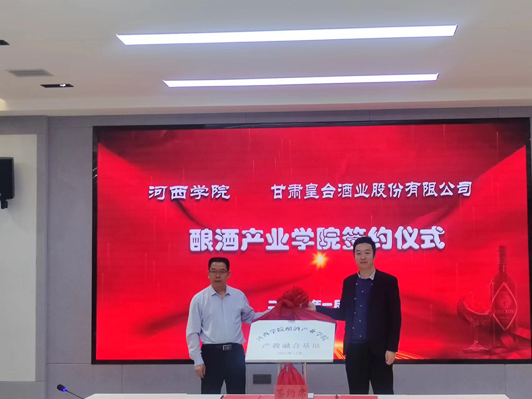1月5日,河西學(xué)院與皇臺(tái)酒業(yè)等省內(nèi)其他幾家酒企共同舉行了河西學(xué)院釀酒產(chǎn)業(yè)學(xué)院簽約及揭牌儀式。河西學(xué)院黨委副書記、校長(zhǎng)周勇代表學(xué)校與皇臺(tái)酒業(yè)等酒企簽訂了合作協(xié)議并揭牌。