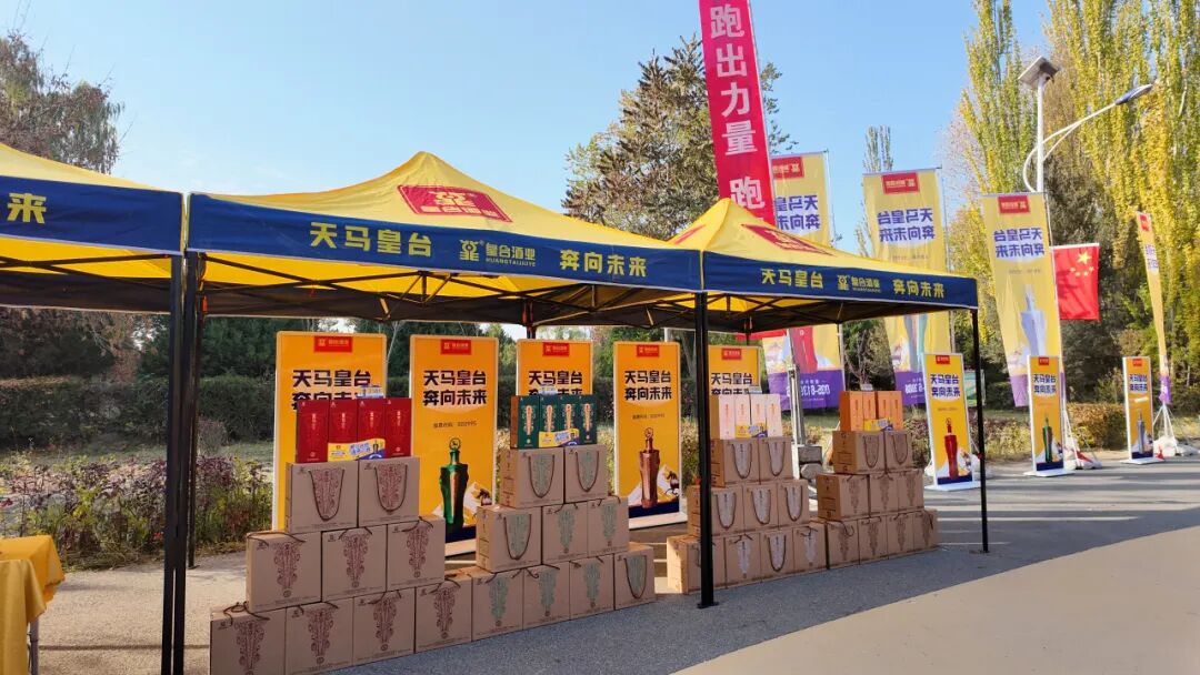 活動現(xiàn)場,皇臺酒業(yè)展位格外引人注目,工作人員熱情地為往來參與者遞上酒杯,邀請大家品賞佳釀。展臺上,皇臺奔馬系列產(chǎn)品整齊陳列,酒瓶上靈動的奔馬在秋光中熠熠生輝,與活動 “馳步追夢” 的寓意相呼應(yīng)。